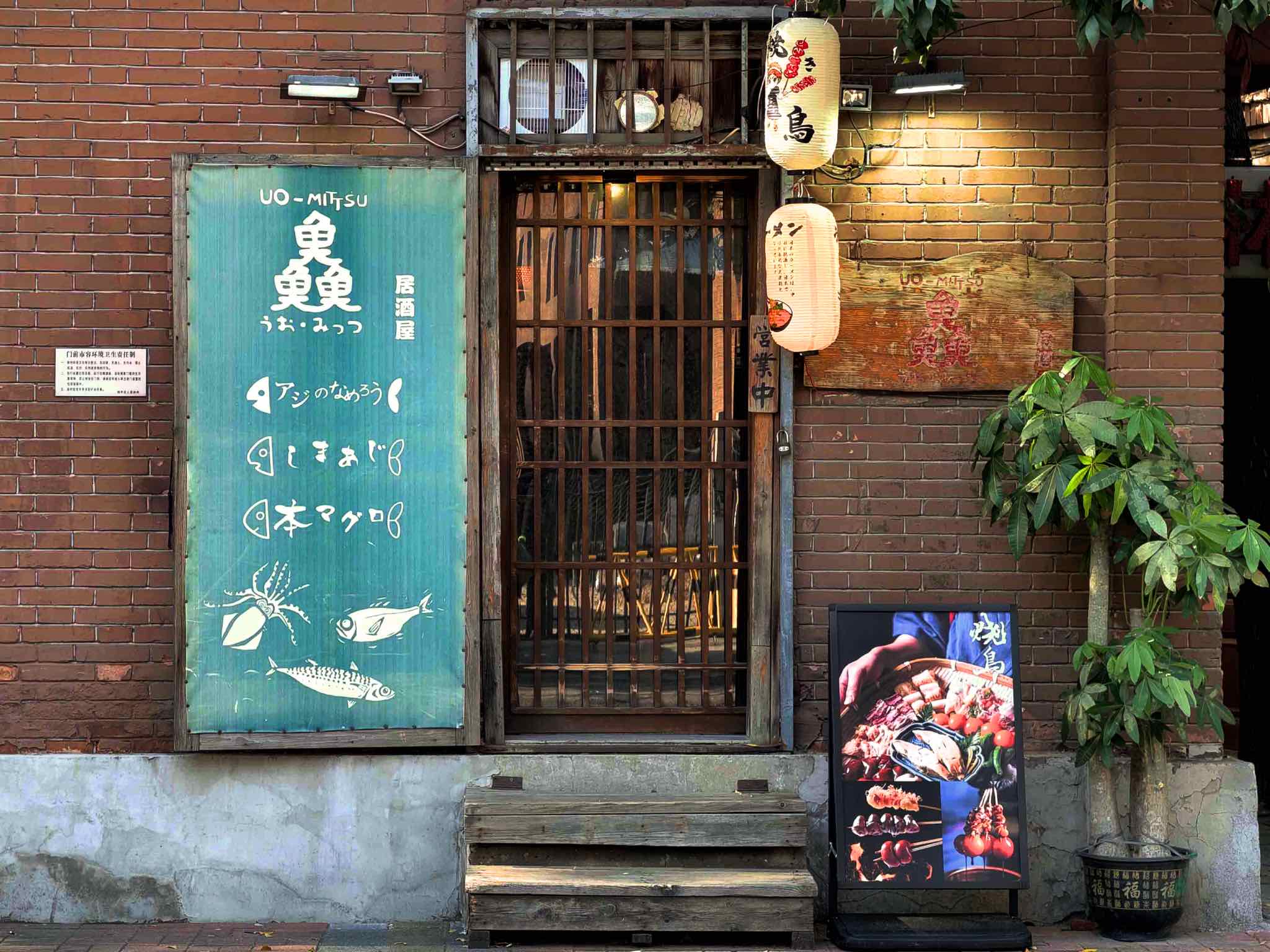 営口道駅から歩いてすぐの場所にある居酒屋「魚魚魚(うおみっつ)」。
