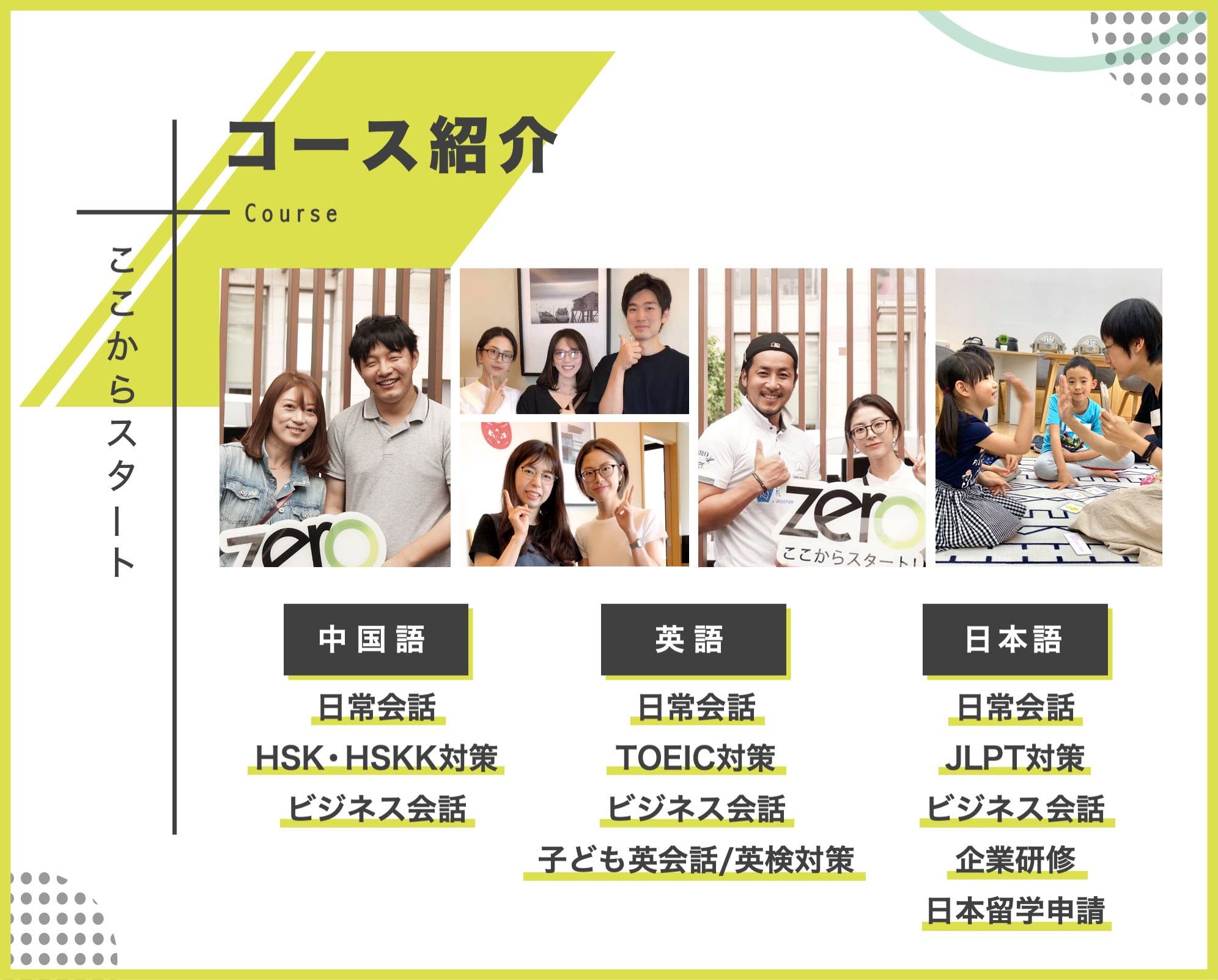 ここからスタート「ZERO(ゼロ) Language School」。新たなスタートをきる方に、話せる実感を学びの意欲に繋げられるお手伝いができればと思っています。