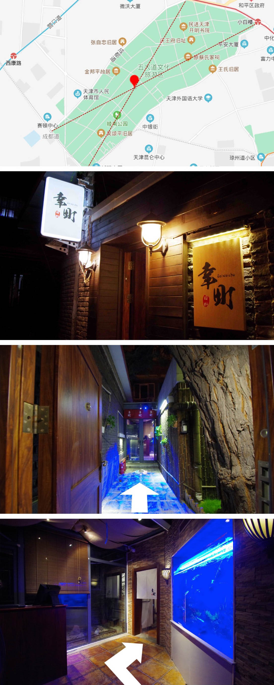 地図で場所を確認してびっくり。五大道のほぼ中心!桂林路と大理道の交差点付近の大理道沿いの小道を入ると、夜道に灯る看板がすぐ目に留まります。