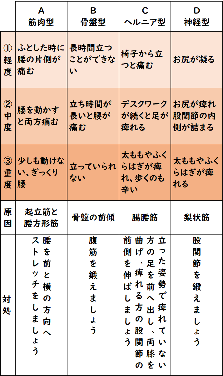 ● 腰痛のタイプ ●
