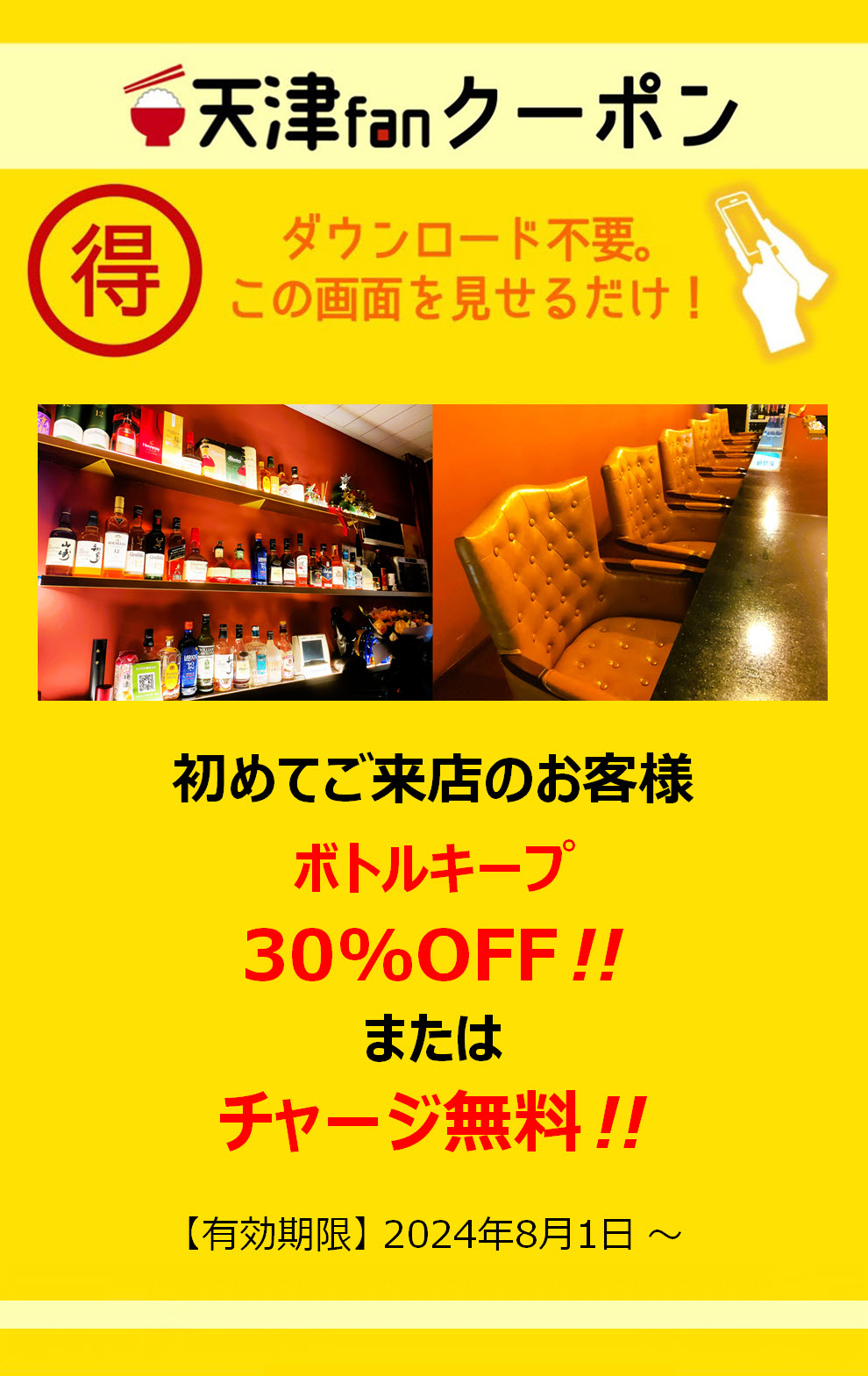 ・ ボトルキープ30%OFF ・ チャージ無料 お好きな方をお選びください。