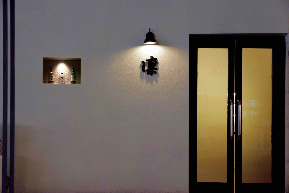 宾水西道から「まる福」の前の道を奥へと歩いていき、ちょうど角にある天玺21号楼の1階にあります。白い壁に優しく灯る「凛」の文字が目印です。