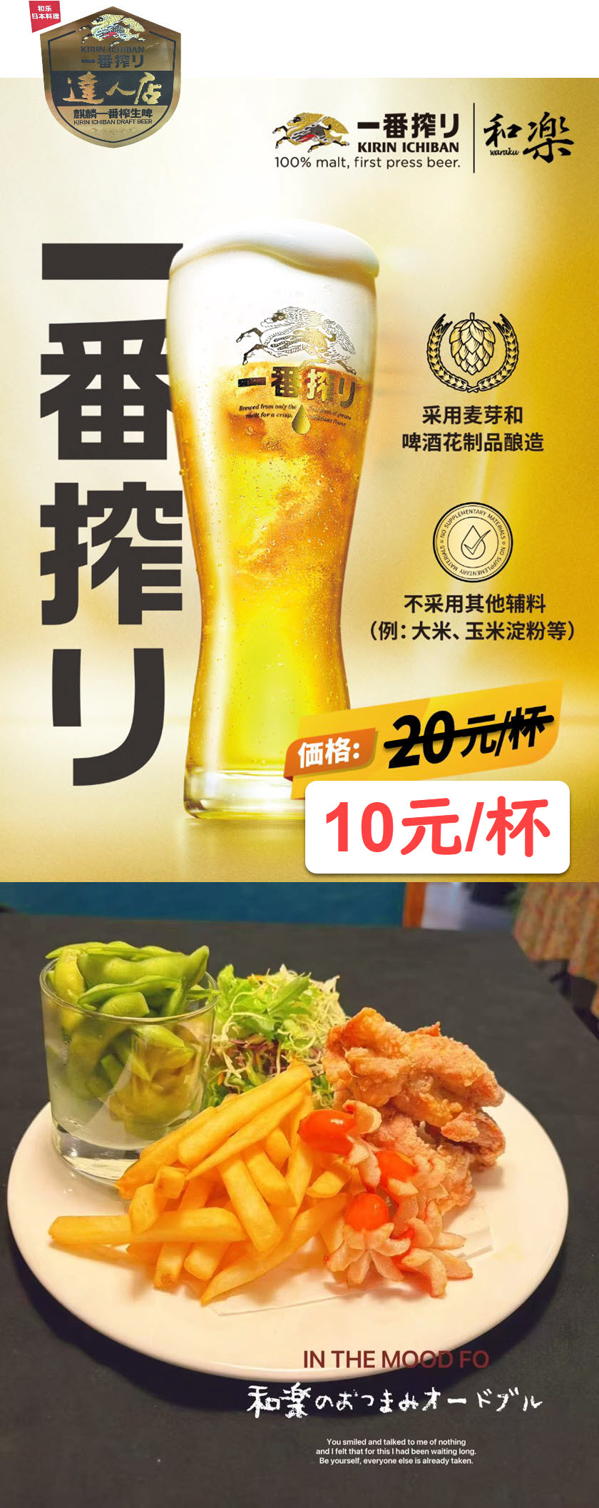 キリン一番搾りの「達人店」の認証を得た達人が入れるおいしい一番搾りが、何と!「一杯10元」。