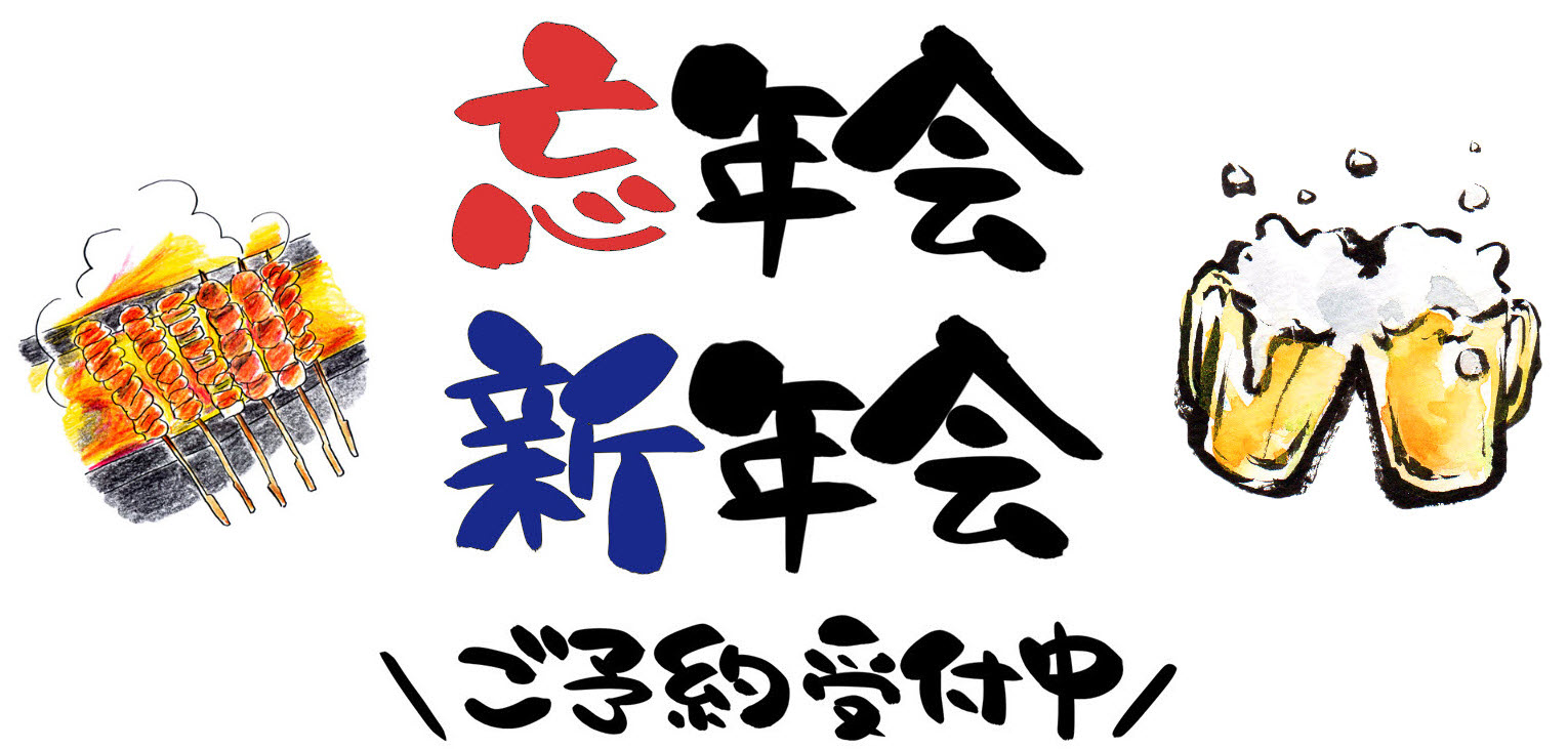 さあ、今年もやってきました「忘・新年会」の季節。達磨家の種類豊富な串焼きをベースにした宴会コースで2025年を締め、2026年を迎えませんか?