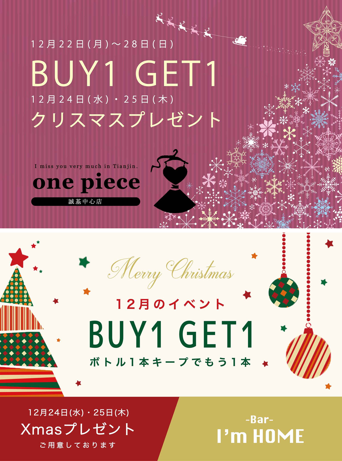 いつも one piece (時代奥城店) をご愛顧いただき、ありがとうございます。 ● クリスマスイベント ● ➊ 12月22日(月) ~ 28日(火)