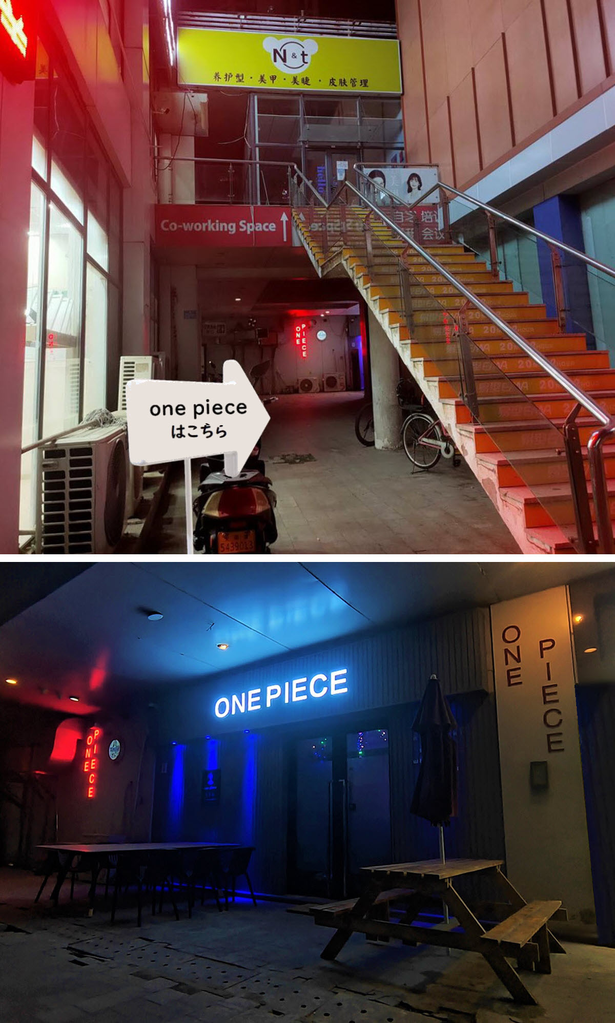 ソファー席はグループでのご利用にピッタリ。 カウンター席とソファー席の間には広々フロアーもあるので、とてもゆったりとした空間となっていますまた、各種宴会の2次会、様々なパーティーやイベント等にもご利用いただけます。 カラオケは最新の「JOYSOUND CROSSO」。歌いたい曲がきっと見つかります。 ● 場所 ● まず宾水西道からまる福さんの方向へ。酒店式公寓18号楼入口を過ぎ、19号楼入口の手前の右手奥に下記▼のネオンが見えます。ネオンに向かって歩いてください。