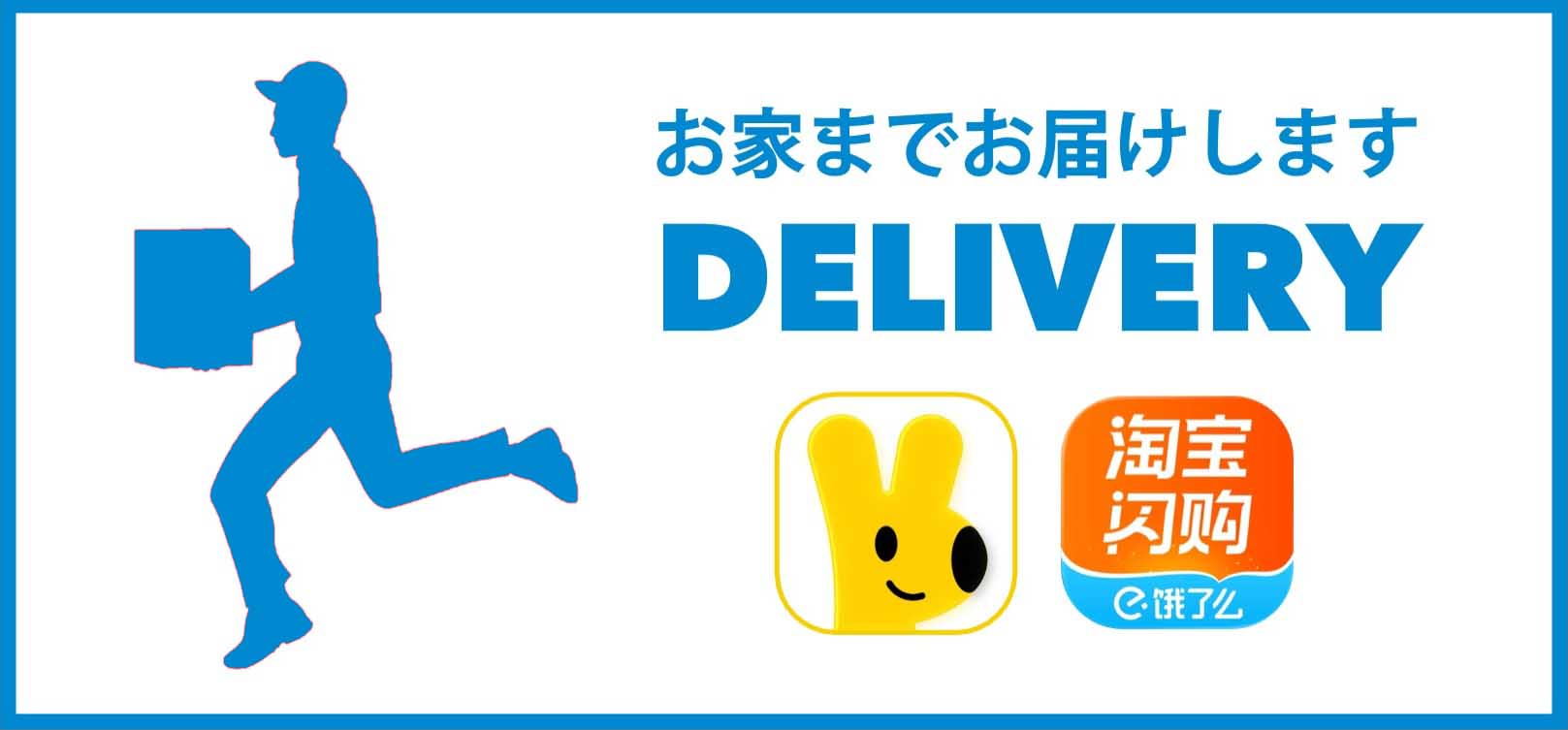 デリバリー承ります デリバリーは ・美团外卖 ・淘宝闪购(旧 饿了么) 各アプリよりご利用いただけます。 デリバリー営業時間は 11:00 〜 21:00(L.O.21:00) ★ 当店で使用しているコシヒカリの販売も行っております。