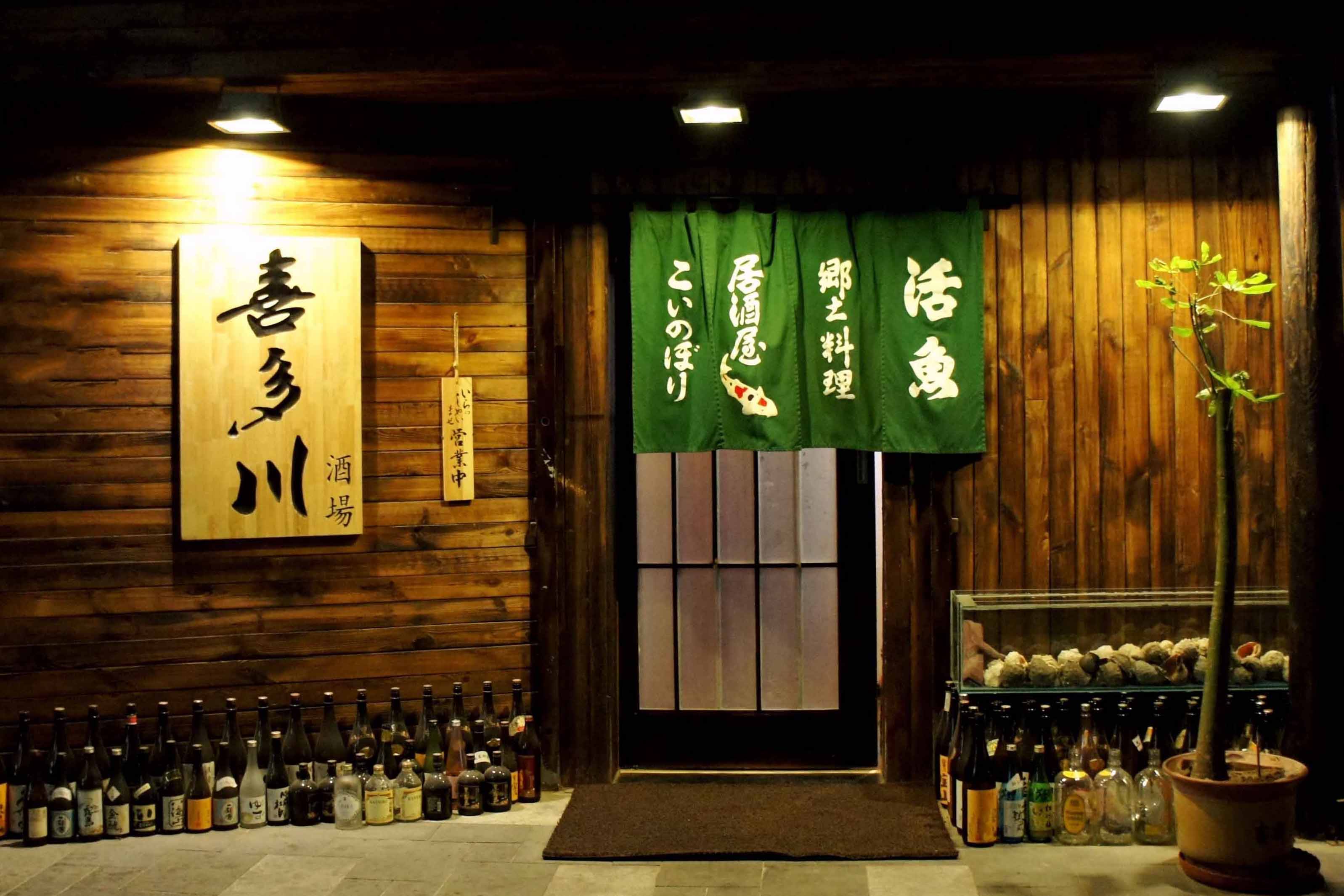 時代奥城の一角にたたずむ緑ののれんが目印のお店「喜多川」。
