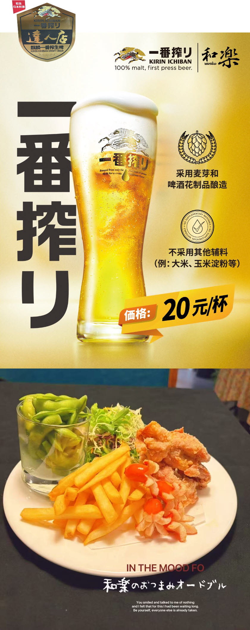 \ キリン一番搾り / 達人店 キリン一番搾りの「達人店」の認証を得た達人が入れるおいしい一番搾りをご賞味ください。