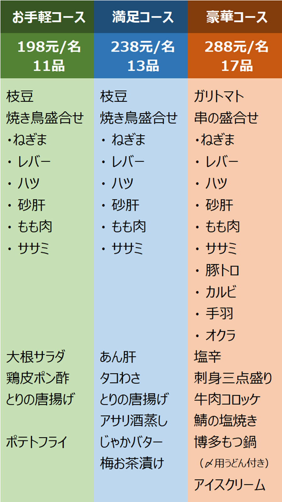 さあ、今年もやってきました「忘・新年会」の季節。達磨家の種類豊富な串焼きをベースにした宴会コースで2025年を締め、2026年を迎えませんか?